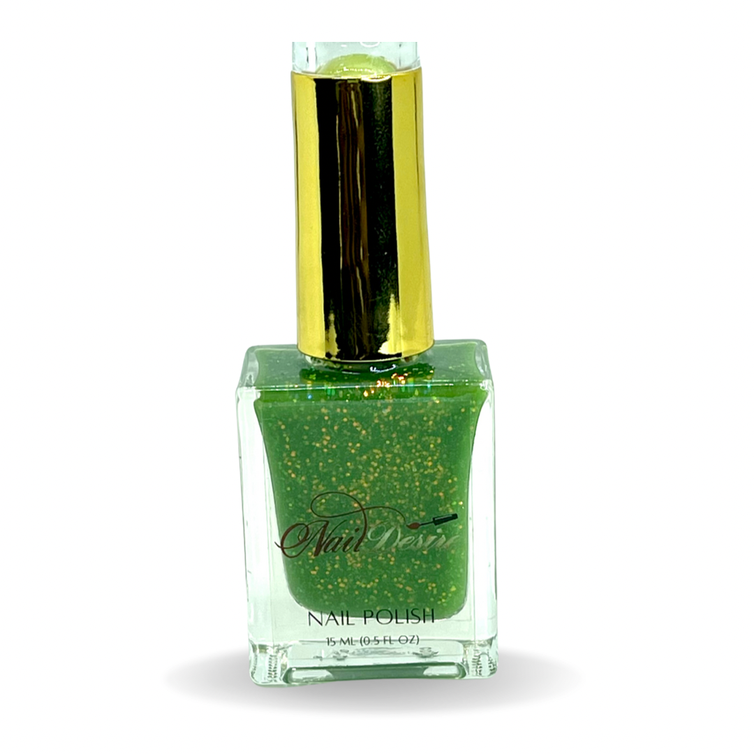 Green apple with a twist. This bright green is mixed with glitter to create that sour effect 🍏